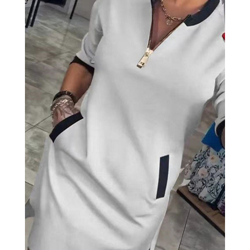 Women's Mini Dress Casual Dress Modern Daily Going out Weekend Regular Fit Color Block 3/4 Length Sleeve V Neck Black White Khaki Gray Spring Fall
