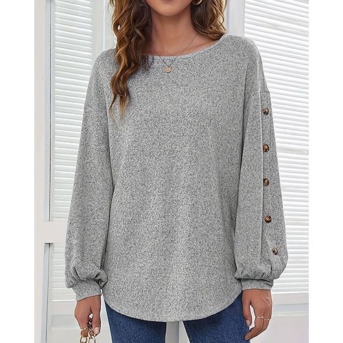 Per donna Maglietta Semplice Moda Elegante Classico Manica Lunga Girocollo Top Regolari Quotidiano Uscire Weekend Bottoni Grigio Primavera Autunno