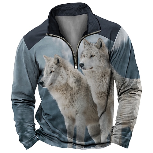 Per uomo MOON Lupo Stampa 3D Felpa Sport Moda Casual Manica Lunga Collo alla coreana Con cerniera All'aperto Casa Feste Lavoro Abbigliamento casual alla moda Blu 1 Blu 2# Autunno Tutte le stagioni