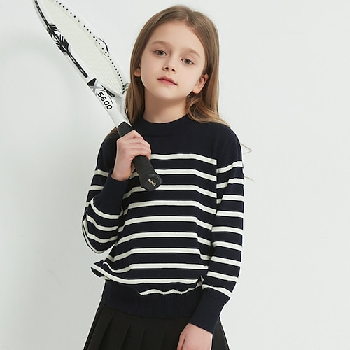 Kinder Mädchen Pullover Gestreift Outdoor Langarm Rundhalsausschnitt Mode 4-12 Jahre Herbst Marineblau Beige