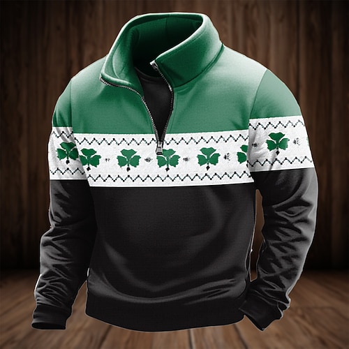 Giorno di San Patrizio Per uomo Trifoglio Felpa Sport Moda Casual Con cerniera Casa Abbigliamento casual alla moda Lavoro Feste Verde 2# Verde Autunno Tutte le stagioni progettista S M L XL XXL XXXL