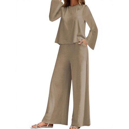Set di pantaloni in cotone e lino da donna Bolero Top Camicia a maniche lunghe Colletto Colore solido Moda Streetwear Casuale Quotidiano Outdoor Blu Nero Bianco Estate Vestibilità ampia