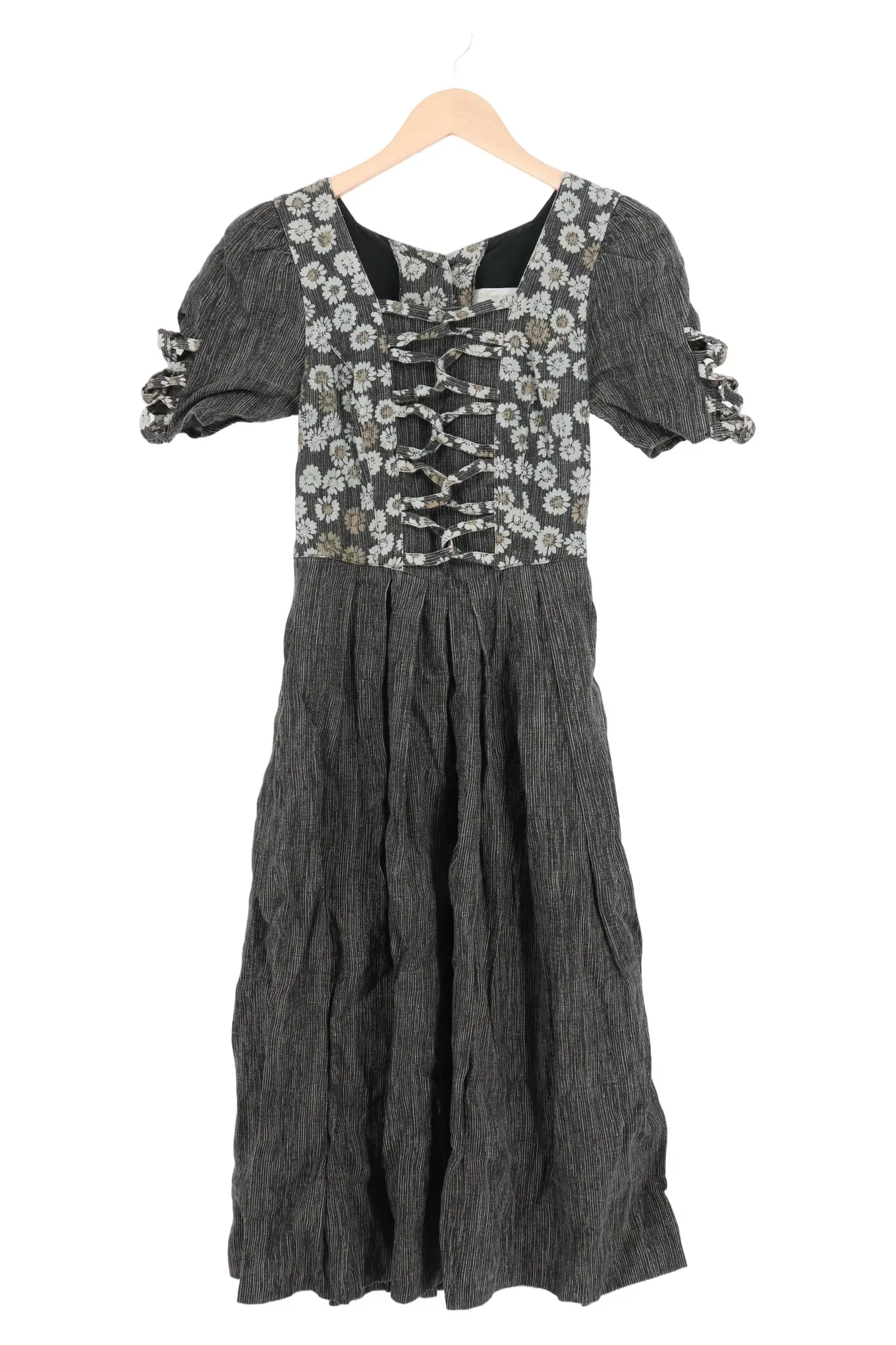 H. MOSER Dirndl Trachtenkleid Gr. 38 Grau Blumen Leinen