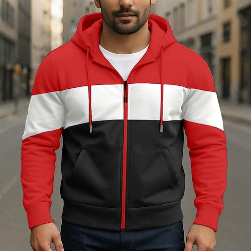 Per uomo Felpa con cappuccio Felpa con cappuccio a zip intera Bianco Rosso Blu Cachi Con Cappuccio Semplice Patchwork Sport Outdoor Quotidiano Abbigliamento casual alla moda Streetwear Cool Designer