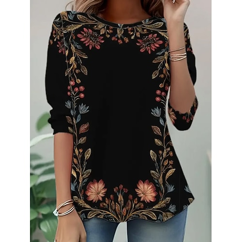 Per donna Maglietta Ombre Floreale Grafico Moda Casual Manica Lunga Girocollo Top Regolari Quotidiano Weekend Stampato Blu Nero Rosso Estate Primavera Autunno