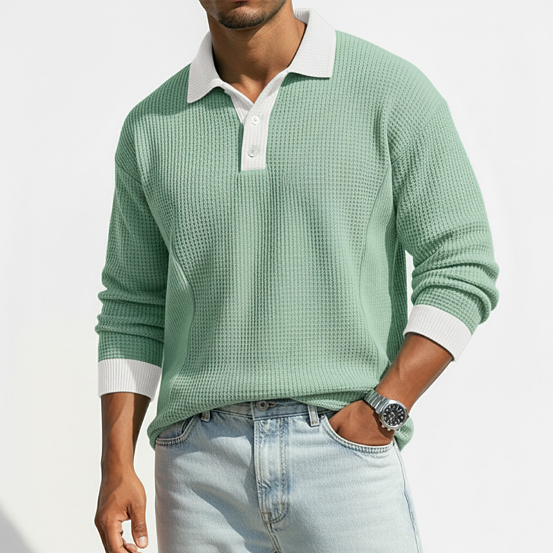 Men's Waffle Polo Shirts Polo Shirts Casual Sports Lapel Long Sleeve Fashion Basic Color Block Patchwork Color Block Spring Fall Winter Regular Fit Red Navy Blue Green Gray Light Blue Waffle Polo