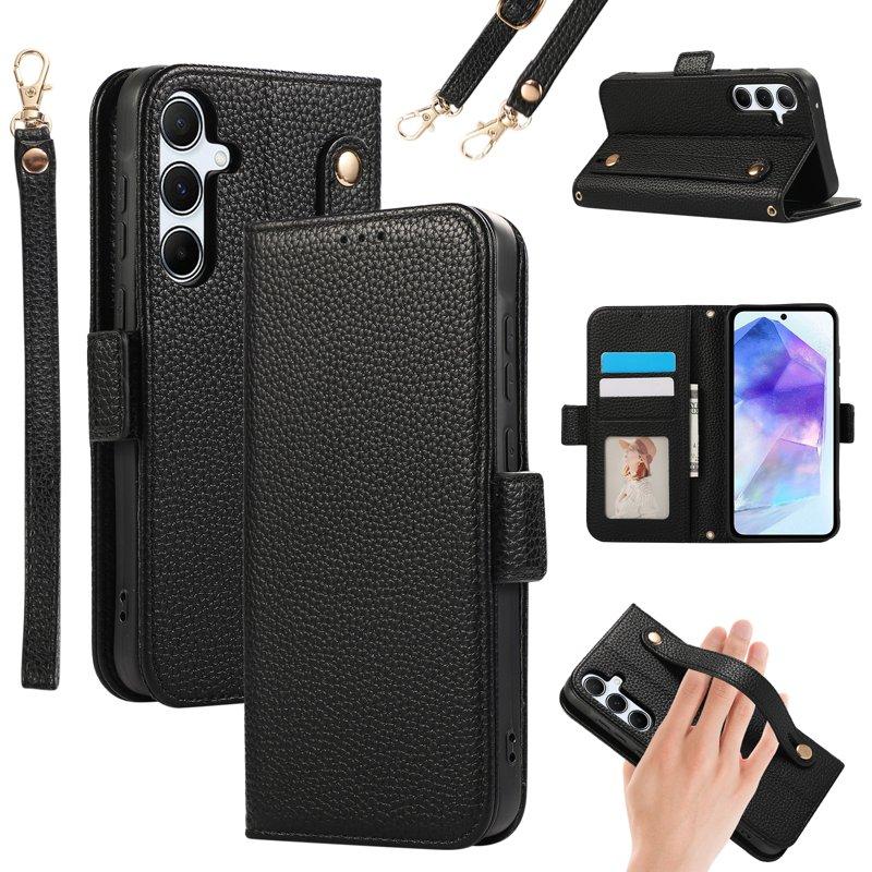 Handy Hülle Handyhüllen Für Samsung Galaxy S22 S21 Ultra Plus S20 A56 A36 A16 A55 5G A35 5G A25 A15 Brieftaschenhülle mit Trageriemen Mit Handgelenkschlaufe Ständer TPU PU-Leder