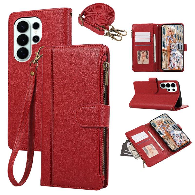 Mobilfodral för Samsung Galaxy S26 Ultra Konstläder med kortfack - Röd