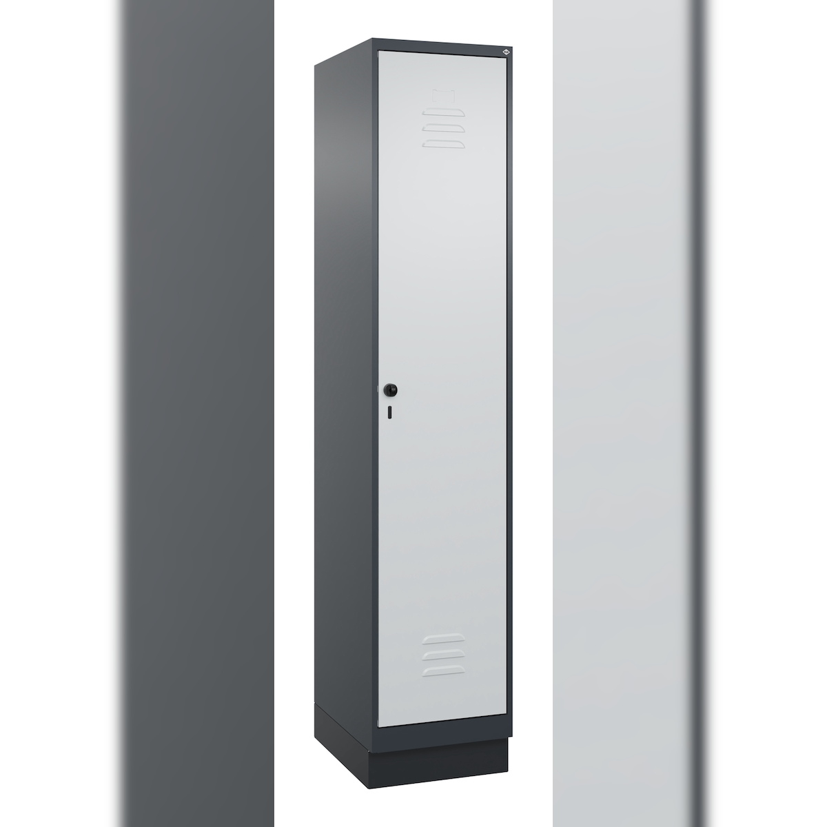 C+P Spind Classic PLUS, Sockel, 1 Abteil, HxBxT 195x40x50cm, Sicherheitsdrehriegel, Anthrazit/Hellgrau von PROREGAL
