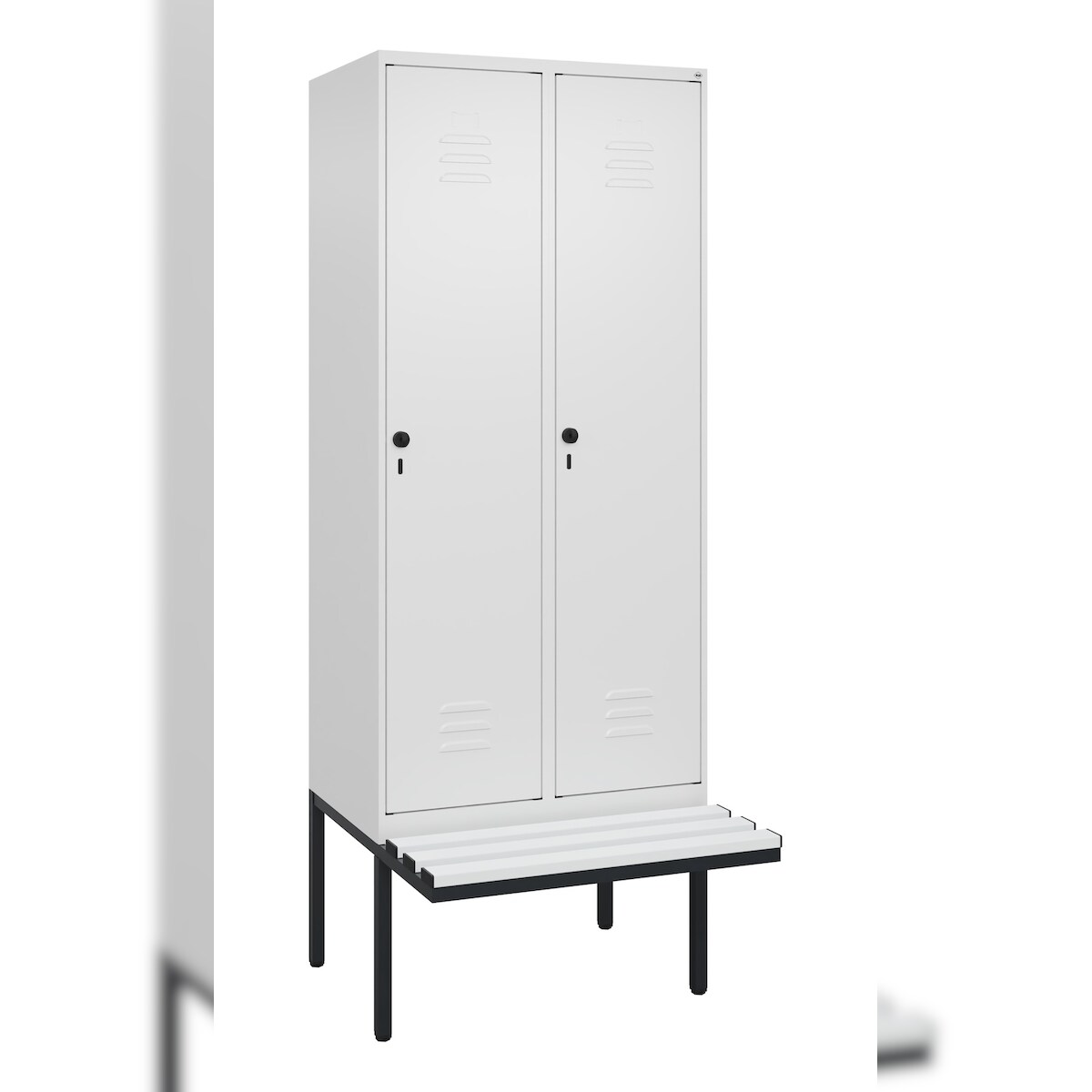 C+P Spind Classic PLUS, Kunststoff schwebende Sitzbank, 2 Abteile, HxBxT 212x80x82cm, Sicherheitsdrehriegel, Verkehrsweiß von PROREGAL