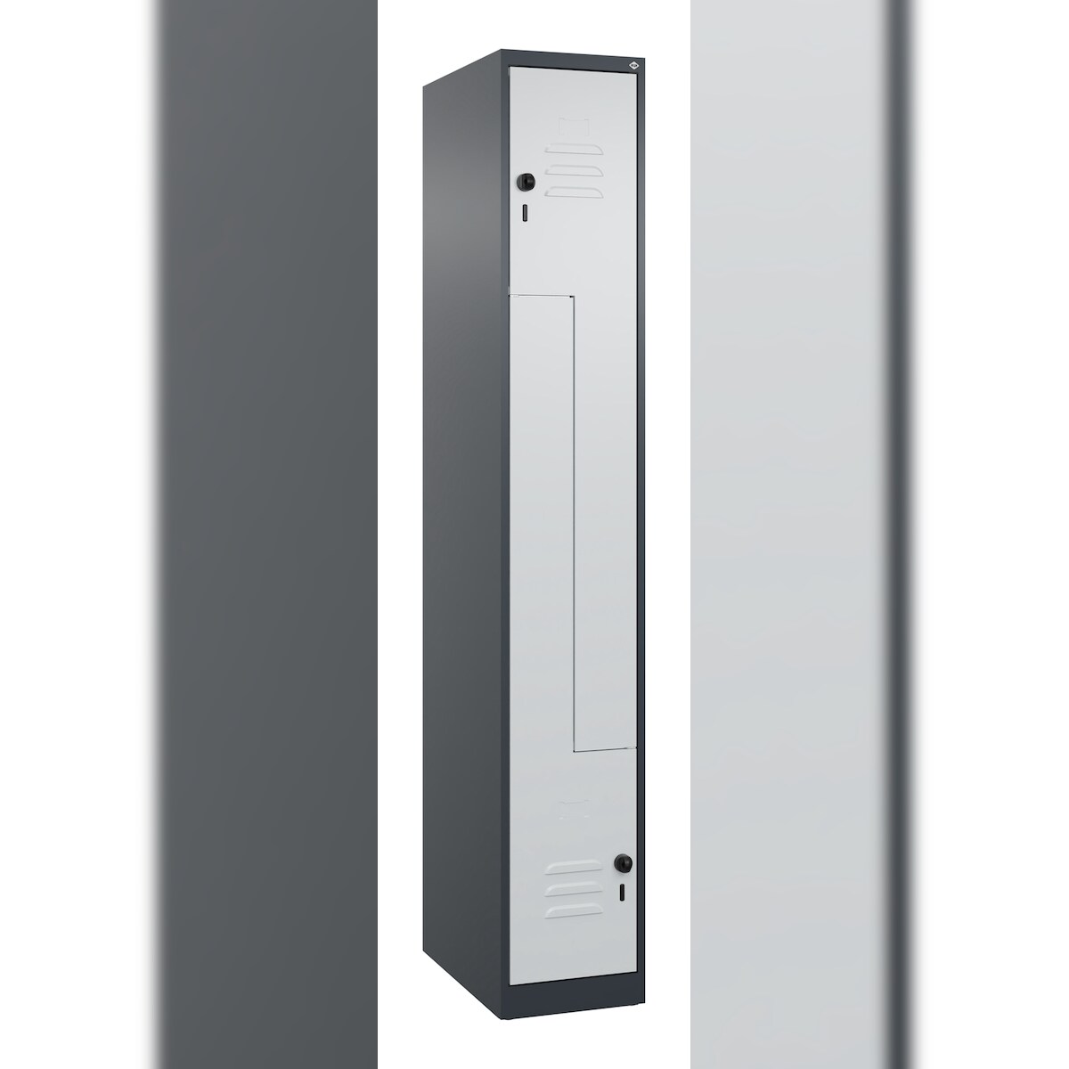 C+P Z-Spind Classic PLUS bodenstehend, 2 Abteile, HxBxT 185x30x50cm, Sicherheitsdrehriegel, Anthrazit/Hellgrau von PROREGAL