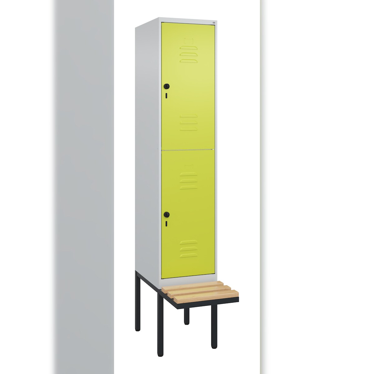 C+P Spind Classic PLUS, Buche schwebende Sitzbank, 2 Abteile, HxBxT 212x40x82cm, Sicherheitsdrehriegel, Hellgrau/Clowngrün von PROREGAL