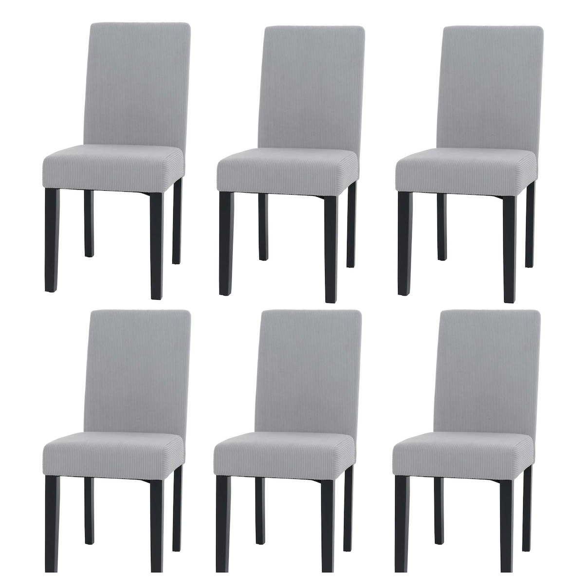 Mendler 6er-Set Esszimmerstuhl Littau, Stuhl Küchenstuhl Hochlehner, Stoff/Textil Cord Holz ~ hellgrau, dunkle Beine