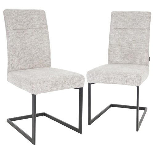 Freischwinger Stuhl 2er Set, Stoff Beige, Metallgestell Schwarz, bequemer Sitzkomfort - für Esszimmer, Küche oder Wohnbereich| Raburg Maggie
