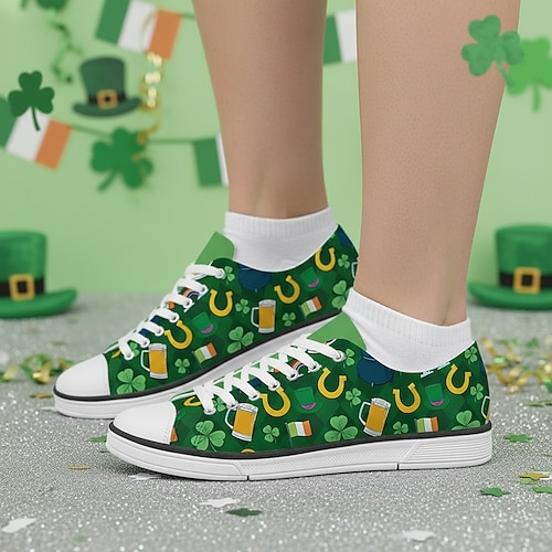 Sneakers casual in tela da donna a tema irlandese per San Patrizio: scarpe traspiranti con lacci per le vacanze, perfette per passeggiate, feste, viaggi e abbigliamento primaverile quotidiano