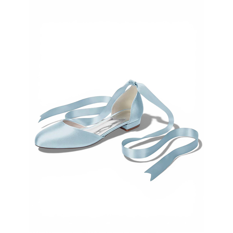 Elegant Satin Blue Wedding Flats for Women with Crystal Accent – Comfortable Low Heel, Pointed Toe Bridal Shoes for Formal Events