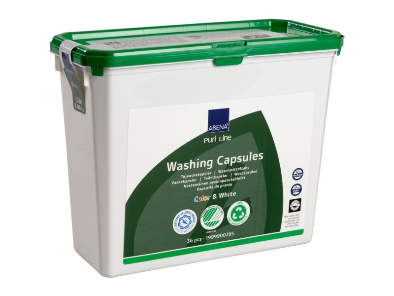 Tøjvaskekapsler, ABENA Puri-Line, kulørt og hvidt, uden farve og parfume 36 stk./pakke - (6 pakker x 36 stk.)