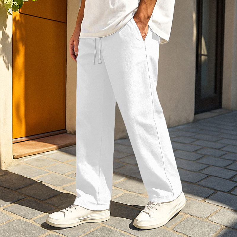 Men's Linen Pants Trousers Summer Pants Baggy Pants Beach Pants Drawstring Elastic Waist Straight Leg Plain Comfort Breathable Full Length Home Daily Holiday Vacation Fashion WhiteKhaki KhakiBlack