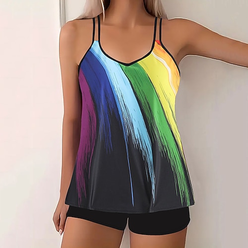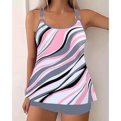 Per donna Costumi da bagno Due pezzi Shorts Costume da bagno Senza schiena Vacanza Abbigliamento da Spiaggia Grafico Girocollo Senza Maniche Costumi da bagno