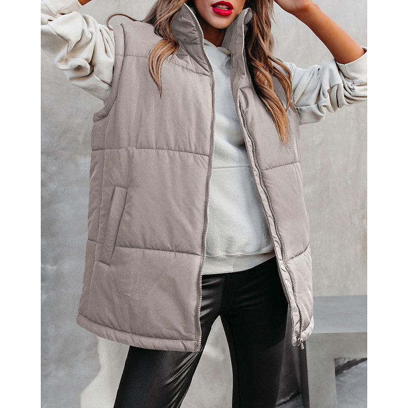Women's Vest Warm Comfortable Zipper Pocket Fashion Plain Going out Weekend Zipper Regular Stand Collar Regular Fit Sleeveless Outerwear Black White Khaki Fall Winter