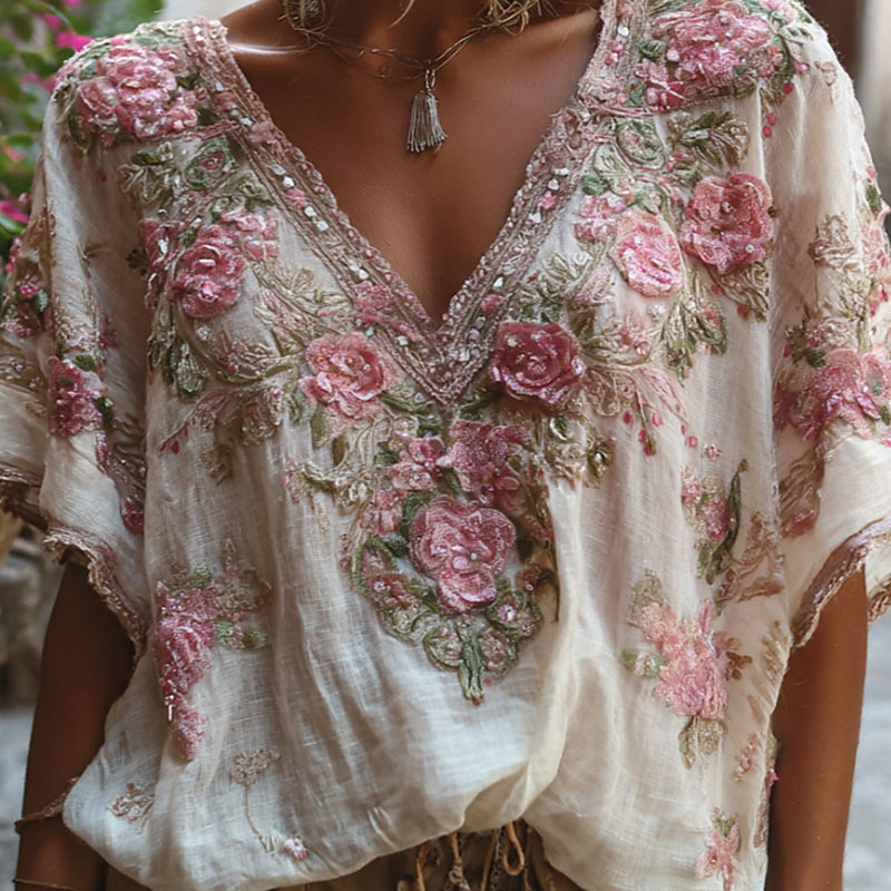 Women's Blouse Floral Graphic Vintage Stylish Half Sleeve V Neck Regular Tops Daily Holiday Going out 3D Print Black White Pink Summer Spring Fall Winter