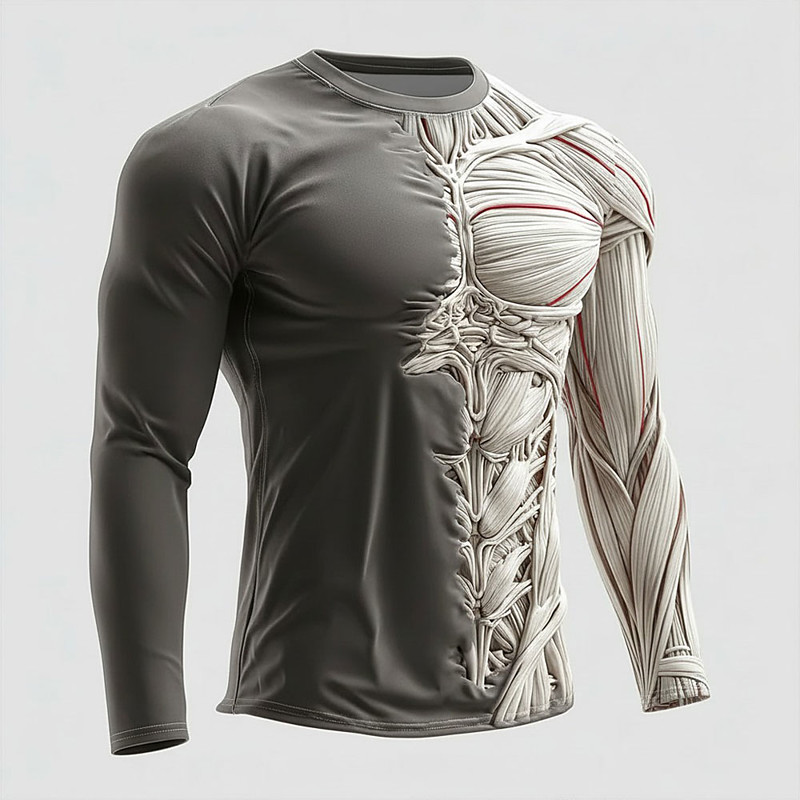 Men's 3D Simulation T Shirt Long Sleeve T shirt 3D Print Crew Neck Shirt Fashion Exaggerated Daily Street Black White Brown Summer Spring Fall Clothing Apparel S M L XL XXL XXXL
