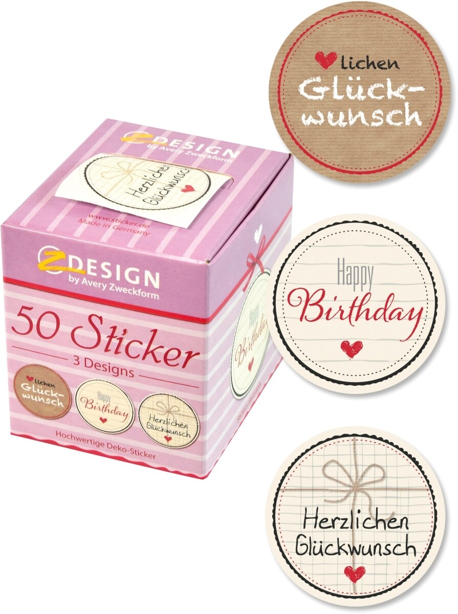 Z-Design Sticker auf Rolle Motiv Herzlichen Glückwunsch rund 38mm 3 Motive 50 Stück
