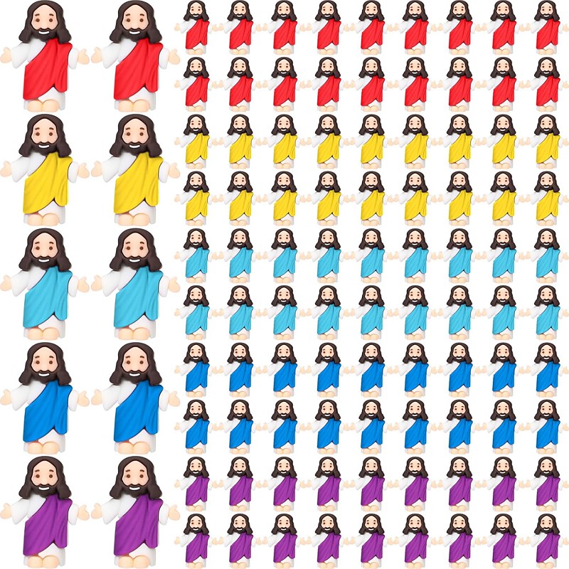 50/100pcs Little Jesus Figures, Mini Jesus Figurines in Bulk Easter Gift Tiny Statues for Easter Egg Stuffers Multicolor Tiny Jesus Figures, Miniature Figurines to Hide