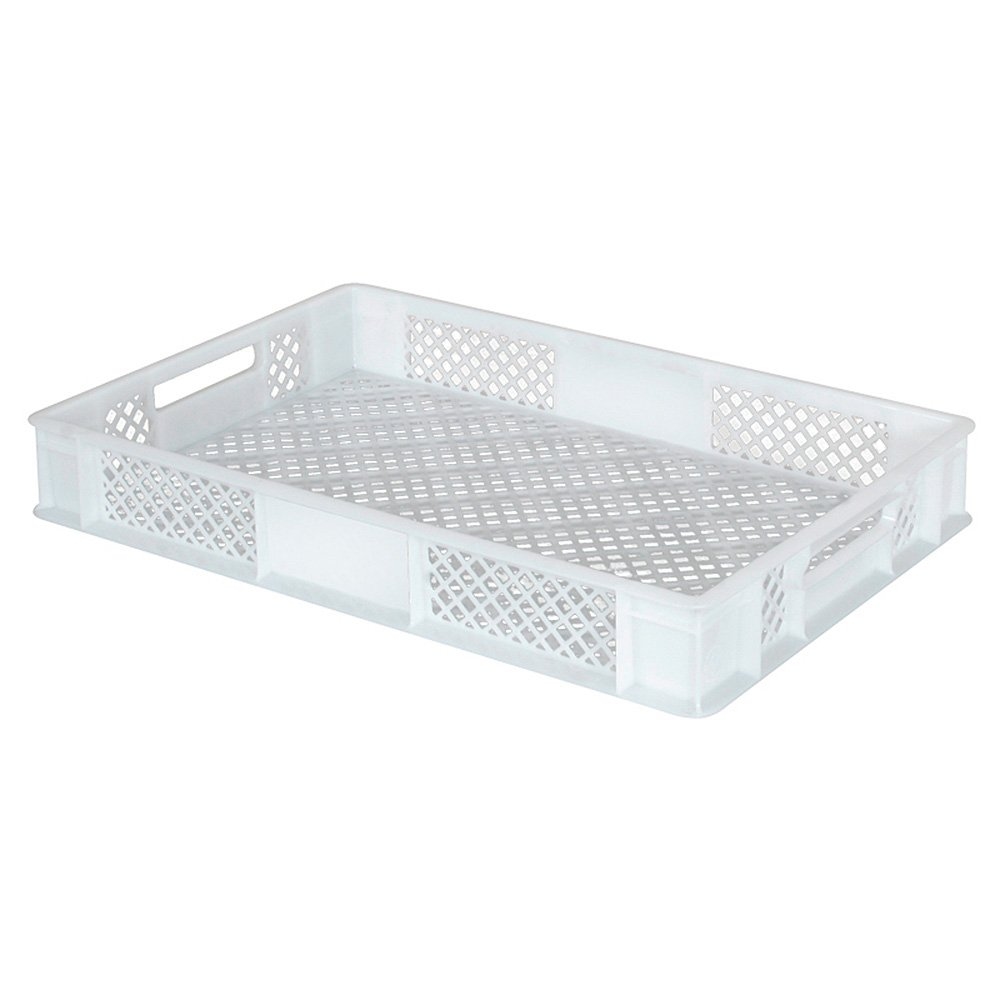 156 Stück Eurobehälter durchbrochen/Bäckerkiste, LxBxH 600 x 400 x 90 mm, PE-HD, lebensmittelecht, weiß, Palettenware