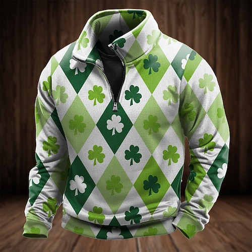 Giorno di San Patrizio Per uomo Trifoglio Felpa Sport Moda Casual Con cerniera Casa Abbigliamento casual alla moda Lavoro Feste Verde 2# Verde Autunno Tutte le stagioni progettista S M L XL XXL XXXL