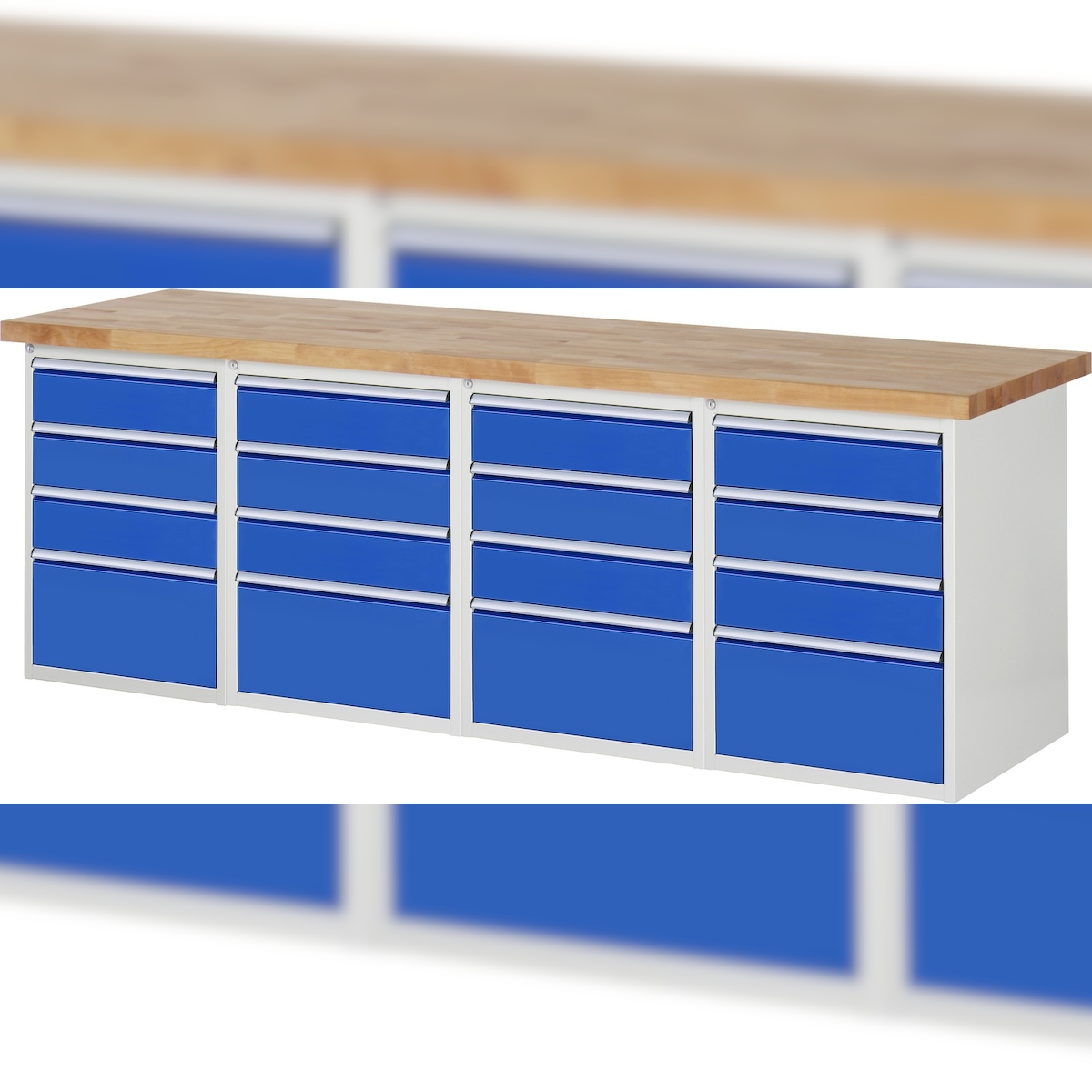 PROREGAL Werkbank Serie 7000 - Modell 7511 | HxBxT 84x300x90cm | 10x Schublade + 1x Schrank | Schubladenmaße 2x60 + 2x90 + 4x150 + 2x270mm