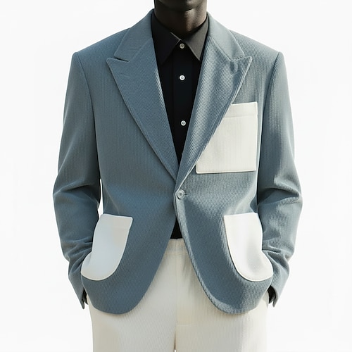 Herren Jacke Blazer Sakko Atmungsaktiv Hochzeit Geschäft Abendkleidung Einreiher - 1 Knopf V Ausschnitt Geschäftlich Elegant Jacke Oberbekleidung Bedruckt Tasche Schwarz Weiß Gelb
