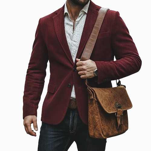 Per uomo Giacca in Velluto a Coste Giacca blazer Colletto ad incastro Vintage Classico Ufficio A righe Tinta unita Blazer Nero Borgogna Marrone Vestibilità su misura Monopetto Due Bottoni