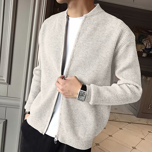 Per uomo Cardigan Maglione Maglione con zip Maglione lavorato a maglia A coste Maglia Standard Cerniera Tinta unica Colletto alla coreana Di tendenza Classico Da tutti i giorni Appuntamento