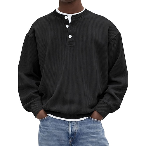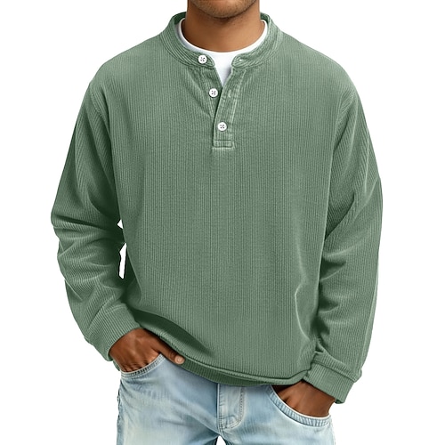 Per uomo Camicia di Velluto a Coste Maglia Henley Maglietta Manica Lunga Tinta unica Semplice Moda Designer Casual Cardigan con Bottoni Henley All'aperto Casuale Quotidiano Autunno Inverno Tutte le