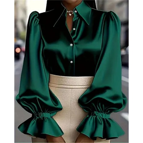 Per donna Camicia Elegant Elegante Raso/Satin Tinta unica Semplice Elegante Vintage Carino Manica Lunga Manica a Palloncino Colletto a Camicia Top Regolari Lavoro Quotidiano Ferie Arricciato