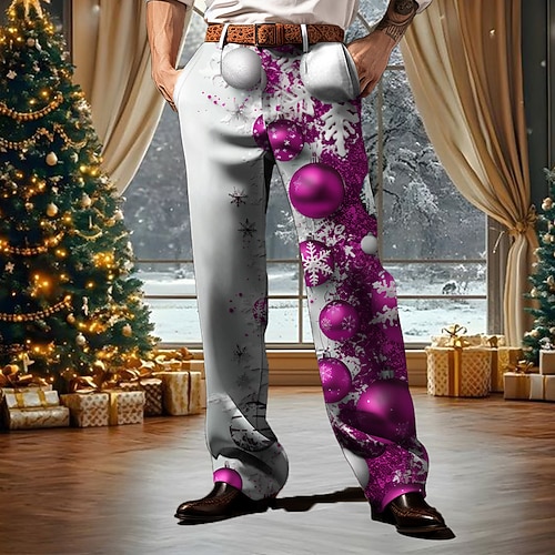 Natale Per uomo motivo natalizio Pantaloni da tuta in pile Vita elastica con coulisse Casual All'aperto Casa Abbigliamento da sera Tasca Termico Inverno Stampa 3D Nero Giallo Rosso