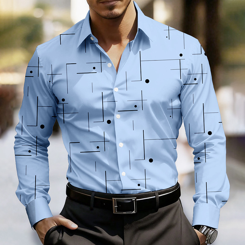 Men's Geometric Round Dots Abstract Art Shirt Button Up Shirt Long Sleeve Fashion Casual Outdoor Dailywear Spring Fall Turndown 3D Print Collared Shirts Blue White Green Gray