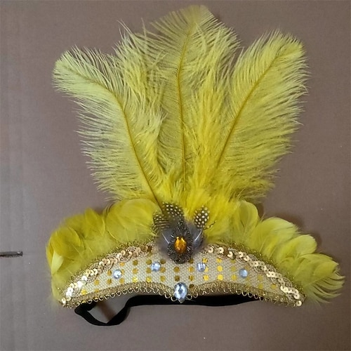 Carnevale 2026 Accessori per Samba di Rio Copricapo in piume di struzzo rosa acceso per donne - Copricapo con paillettes e strass - Costume da showgirl per Carnevale Mardi Gras in Brasile