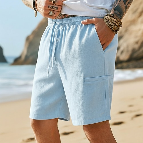 Per uomo Shorts di Lino Pantaloncini Estivi Shorts da Spiaggia Coulisse Elastico in vita Gamba Dritta Semplice Tinta unita Comodità Morbido Sopra il ginocchio Quotidiano Spiaggia Moda Chic Moderno