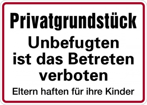 Schild Privatgrundstück Unbefugten ist das Betreten verboten | Alu 250 x 350 mm