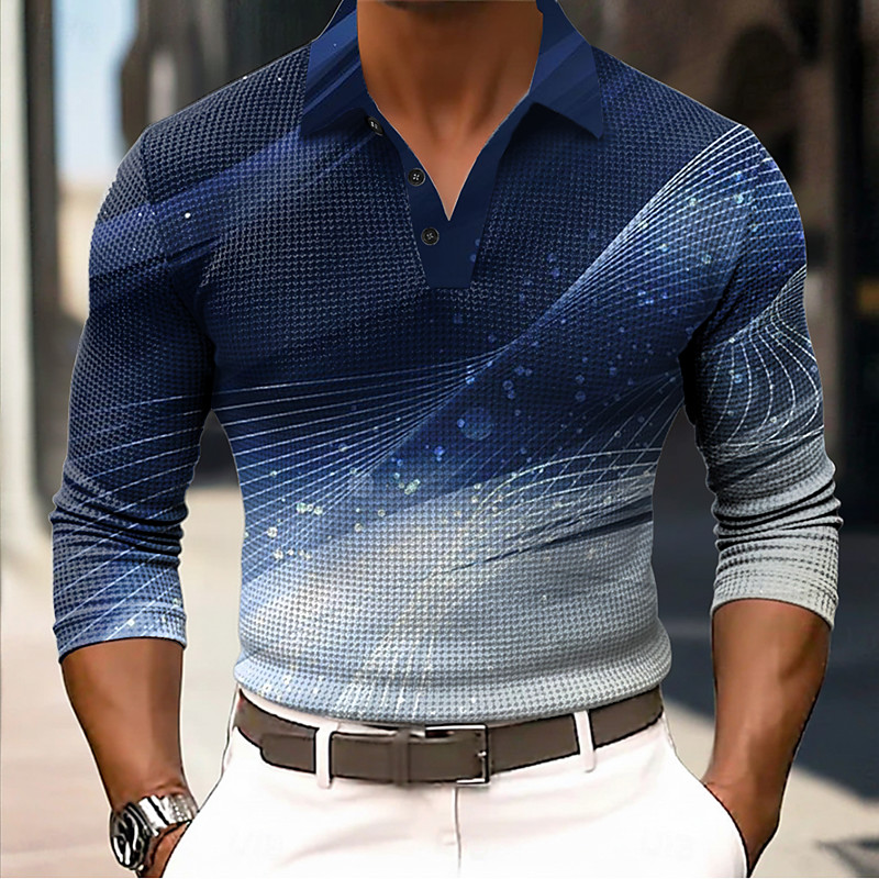 Men's Abstract Geometic Waffle Polo Shirts Long Sleeve Polo Shirts Collared Shirts Business Casual Business Wear to work Daily Wear Buttons Spring Fall Winter Blue Red Green
