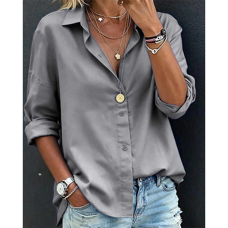 Women's Blouse Solid Color Elegant Stylish Basic Long Sleeve V Neck Regular Tops Daily Work Blue Black Red Green Beige Spring Fall Winter