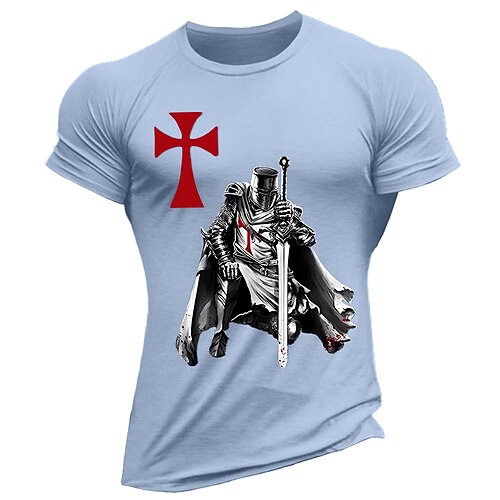 Maglietta Grafica per Uomini Cavaliere Templare Guerriero Medievale Crociato a Maniche Corte con Croce Rossa