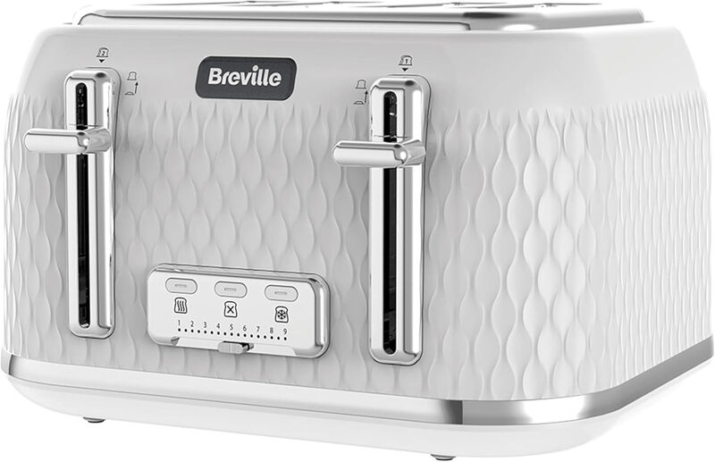Breville Curve 4 Slice Toaster, High-Lift, Wide Slots, Textured, White & Silver Chrome - VTT911