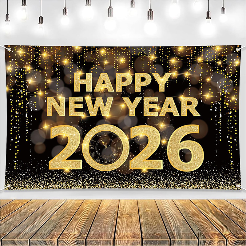 New Year Tapestry Banners Blanket Happy New Year 2026 Cute Romantic 3D Bedroom Living Room Dorm Teens Room College Dorm Wall Porch Home Decor