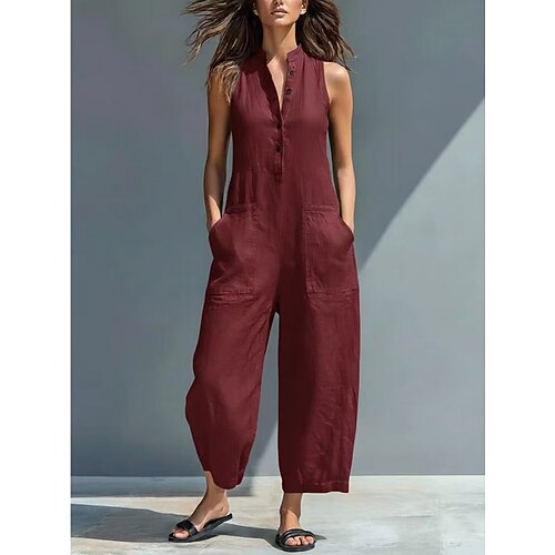 Damen 100% Baumwolle Jumpsuit Aktive Grafik Ärmellos Ärmellos Gerade Rund Ausschnitt Tasche mit Tasche Urlaub Täglich Lockere Passform Pink Blau Khaki Sommer