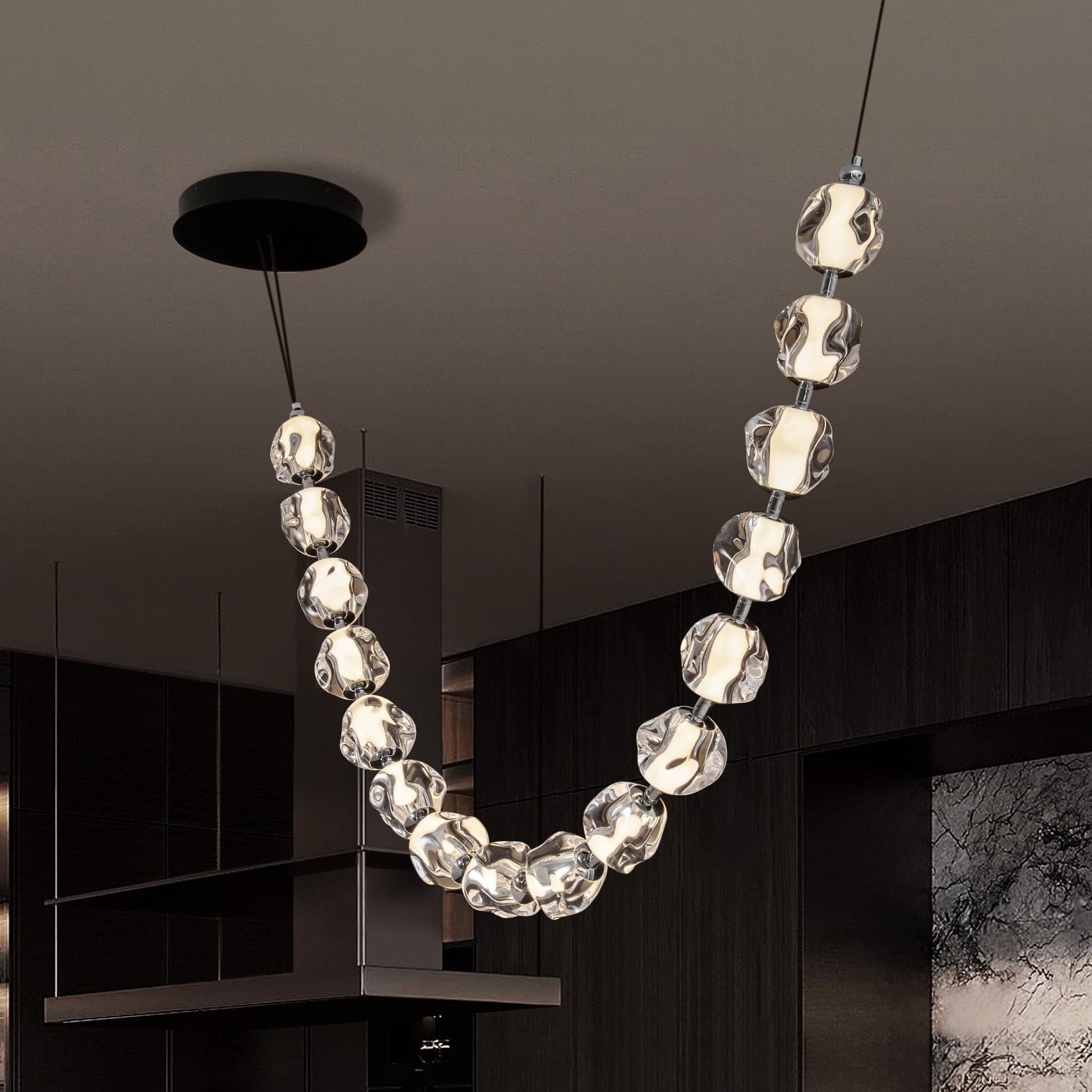 Nova Luce Ifos - hanglamp - 10 x 210 cm - 71W dimbare LED incl. - zandzwart en chroomkleurig metaal