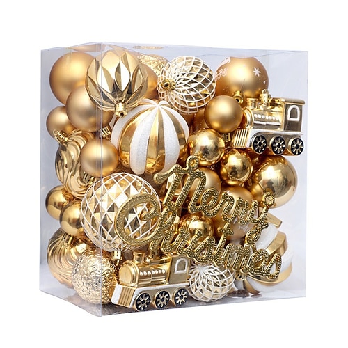 65 Stück Christbaumkugeln, Christbaumkugeln, Weihnachtsdekoration, bemaltes Hängeset, festliche Baumdekoration für die Weihnachtsfeier