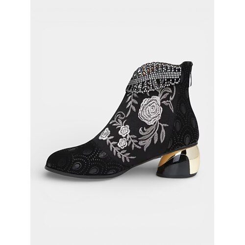 Damen Mardi Gras lila bestickte Satin-Ankle-Boots Vintage Karnevalsparty-Absätze